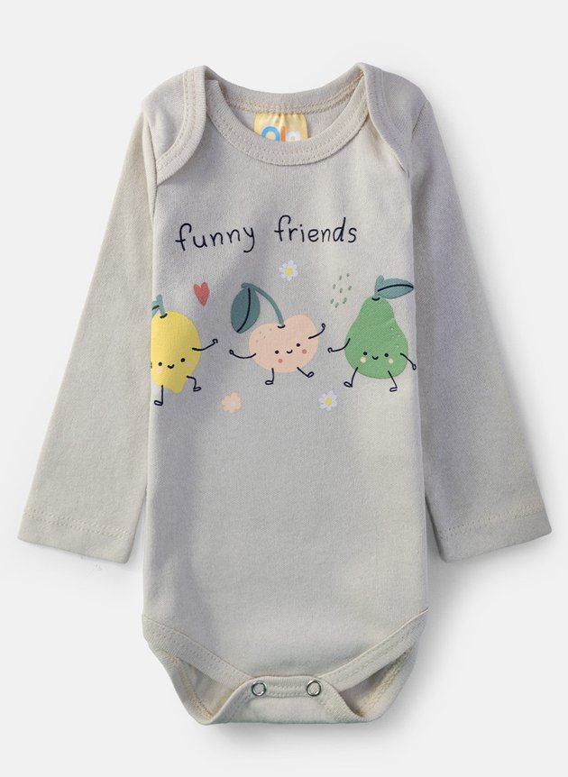 Leve, prático e cheio de alegria, o Body Bebê Manga Longa "Funny Friends" é ideal para os dias cheios de descobertas.