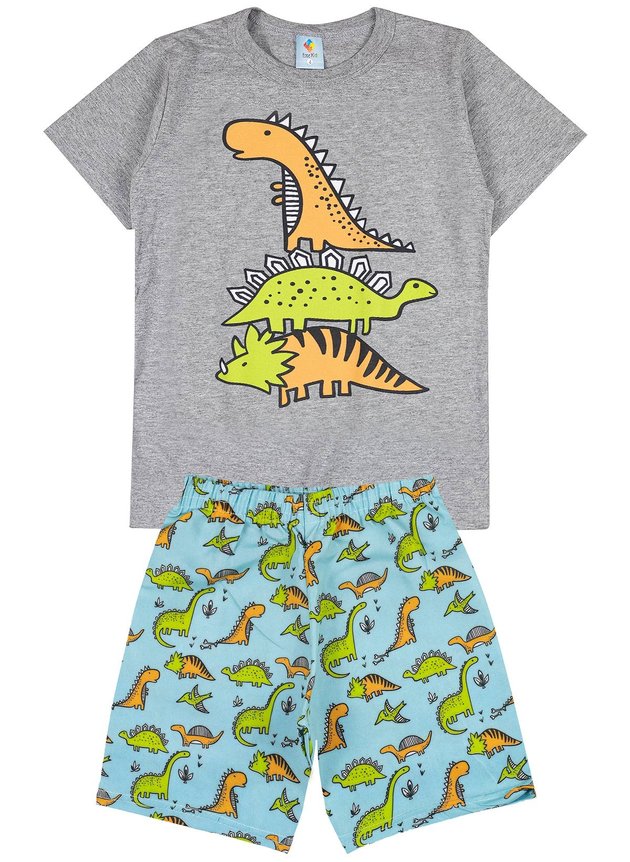 Conjunto infantil masculino composto por duas peças. 1 Camiseta confeccionada em algodão, gola redonda e estampa frontal. 1 Bermuda confeccionada em tactel estampado e cós com elástico.