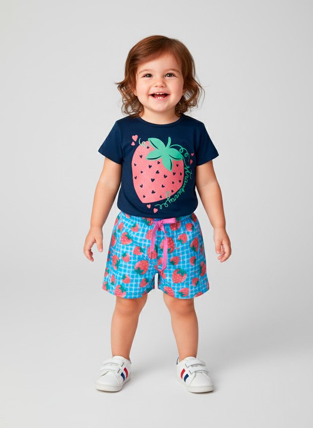 O Conjunto Bebê Menina "Morango" é a escolha perfeita para os dias de diversão!