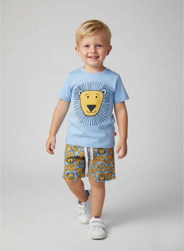 Perfeito para passeios, escola e momentos de lazer, o Conjunto Leão oferece liberdade de movimentos, conforto e um visual marcante que os meninos vão adorar.