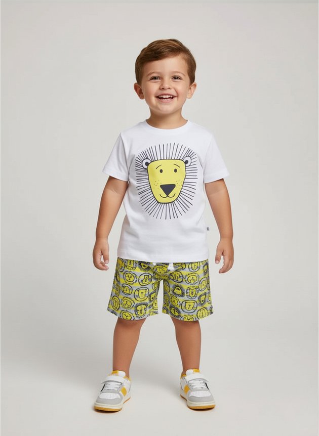 Perfeito para passeios, escola e momentos de lazer, o Conjunto Leão oferece liberdade de movimentos, conforto e um visual marcante que os meninos vão adorar.
