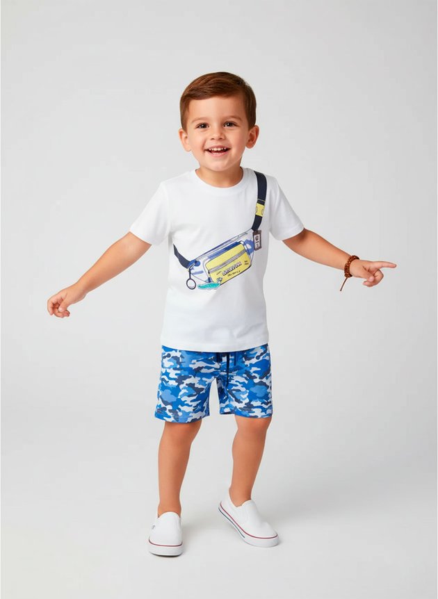 Um conjunto versátil, ideal para acompanhar os meninos em passeios, brincadeiras e aventuras do dia a dia.