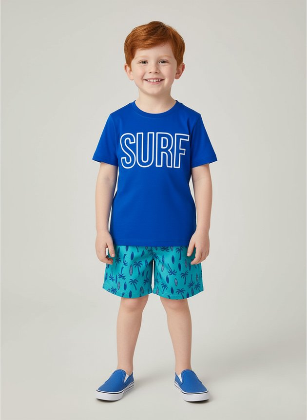 Perfeito para passeios, escola e momentos de lazer, o Conjunto Surf oferece conforto, praticidade e um visual praiano que acompanha o ritmo dos meninos com muita personalidade.