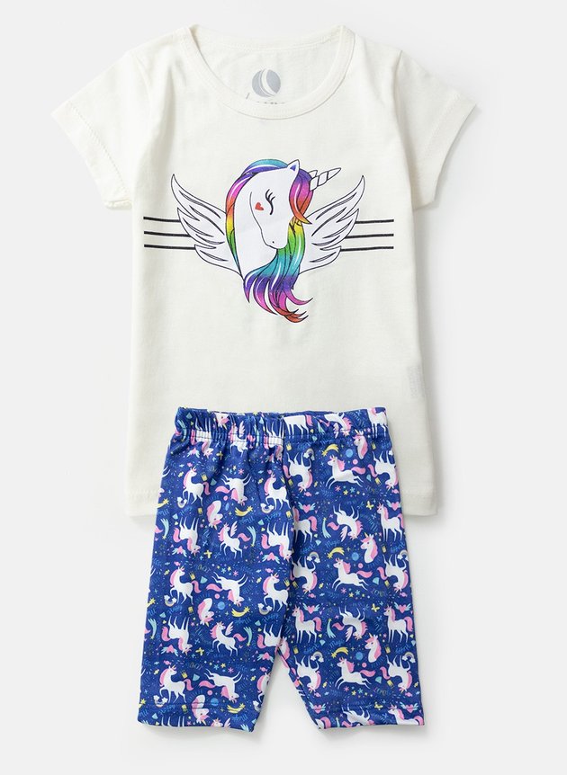 O Conjunto Infantil Feminino Cute Unicorn é a escolha perfeita para as pequenas princesas que adoram entrar no mundo encantado dos unicórnios. Com uma blusa de algodão com estampa de unicórnio e detalhes em fóil arco-íris, combinada com uma bermuda modelo ciclista de suplex com sublimação de unicórnios mágicos, esse conjunto traz o equilíbrio perfeito entre encanto, conforto e muito estilo!