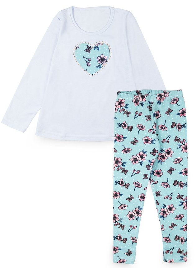 Conjunto Infantil feminino composto por duas peças. 1 Blusa manga longa confeccionada em algodão, gola redonda, estampa frontal em termocolante e detalhes em strass. 1 Calça legging confeccionada em cotton, com estampa rotativa e cós com eslástico. Uma fofura!