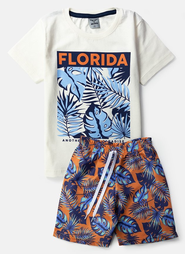Esteja preparado para dias ensolarados e sorrisos radiantes com nosso Conjunto Infantil "Florida". Uma explosão de cor e conforto que transformará qualquer dia comum em uma emocionante aventura tropical!