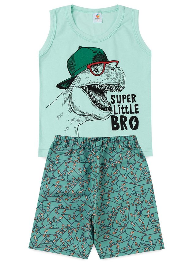 Conjunto infantil menino composto por duas peças. 1 Regata confeccionada em algodão, gola redonda e estampa frontal. 1 Bermuda confeccionado em tactel estampado e cós com elástico.