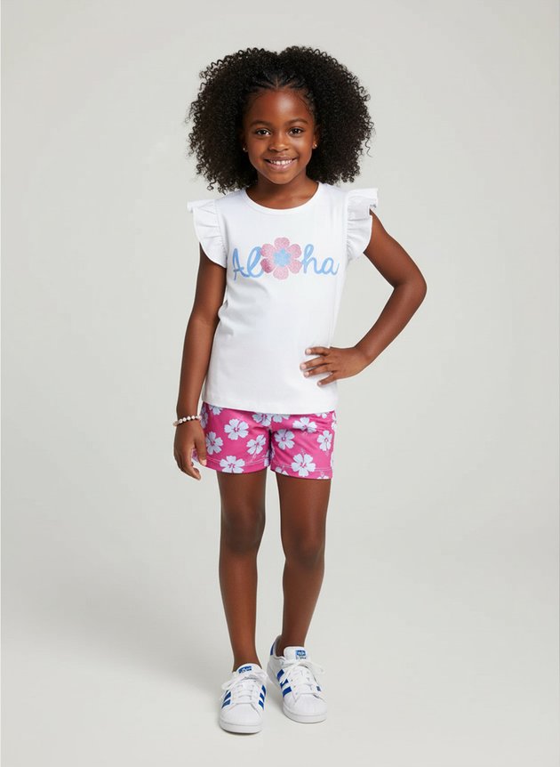 O Conjunto Infantil Menina "Aloha" é perfeito para dias cheios de estilo e leveza