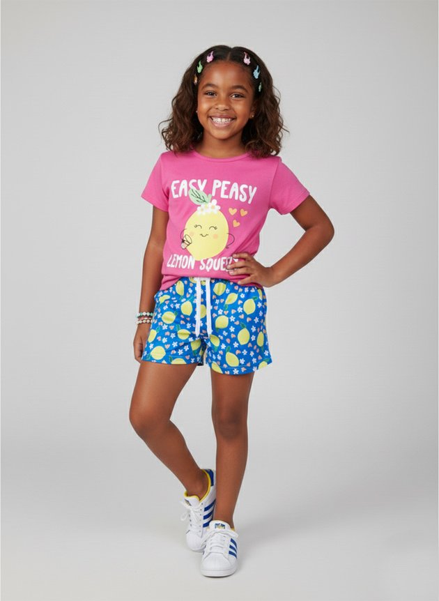 O Conjunto Infantil Menina "Easy Peasy Lemon" é perfeito para os dias alegres e cheios de energia.