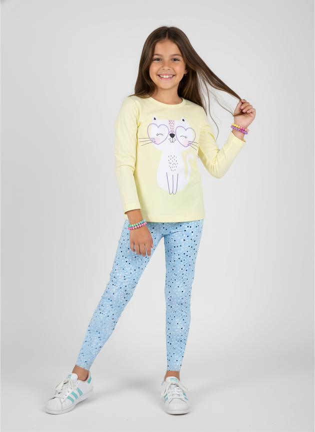 O Conjunto Infantil Menina Meia Estação "Gatinha" é perfeito para os dias mais fresquinhos da meia estação.