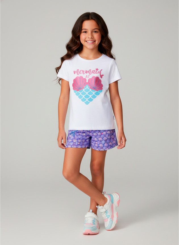 O Conjunto Infantil Menina "Mermaid At" traz o encanto do universo das sereias para o dia a dia das pequenas!