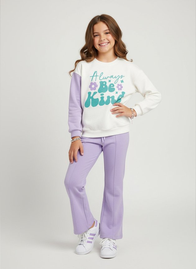 O Conjunto Infantil Menina Moletom "Be Kind" e perfeito para as meninas! Estilo, conforto e um toque de delicadeza para os dias mais fresquinhos
