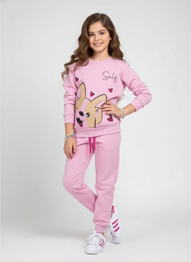 O Conjunto Infantil Menina em Moletom "Cachorrinho Self" é a escolha perfeita para manter as pequenas aquecidas com muito estilo!