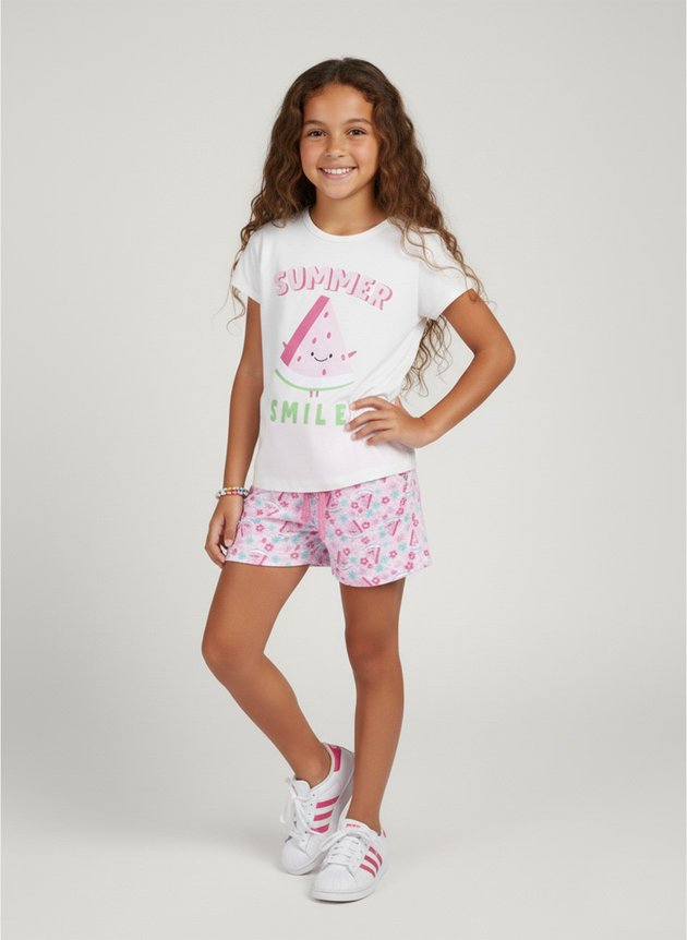 O Conjunto Infantil Menina "Summer Smile" é alegre, divertido e perfeito para os dias de verão.
