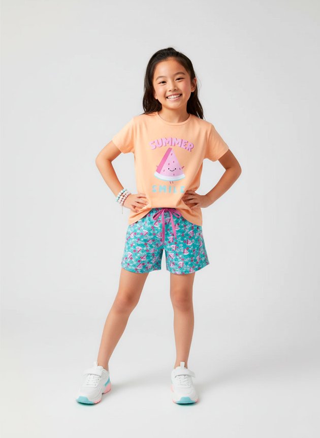 O Conjunto Infantil Menina "Summer Smile" é alegre, divertido e perfeito para os dias de verão.