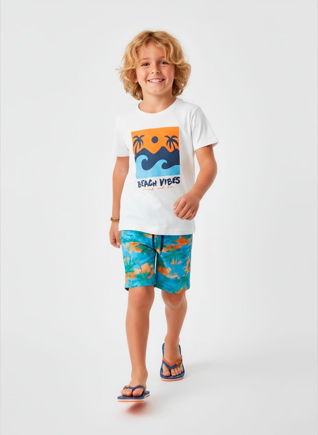 O Conjunto Infantil Menino "Beach Vibes" traz o espírito do verão e das férias para o dia a dia dos pequenos!