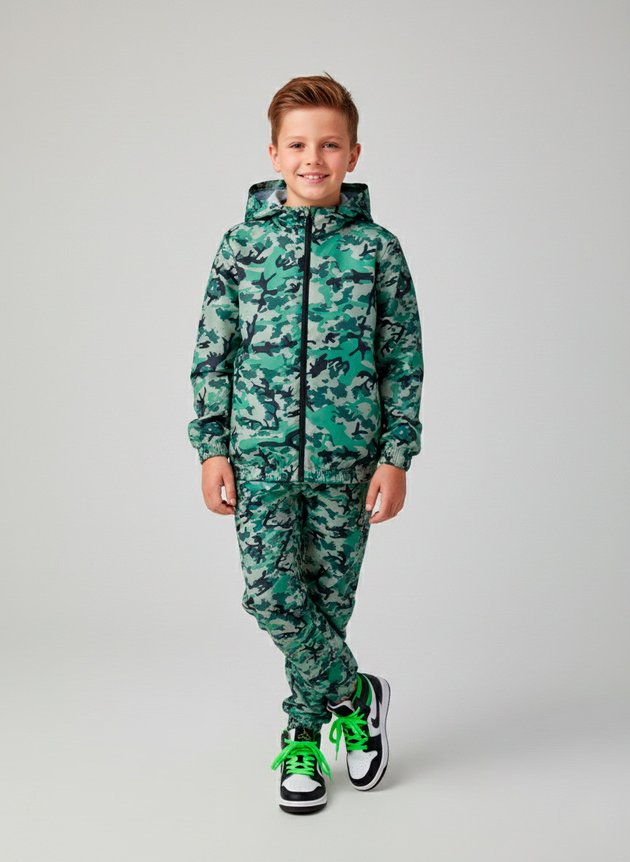 O Conjunto Infantil Menino Corta Vento "Camuflado", a escolha perfeita para os pequenos aventureiros que adoram explorar o mundo com estilo e conforto. Este conjunto é composto por uma jaqueta e uma calça confeccionadas em tactel corta vento, garantindo proteção contra os elementos sem comprometer a liberdade de movimento.