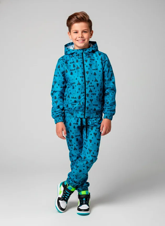O Conjunto Infantil Menino Corta Vento "Ursinhos", perfeito para manter os pequenos protegidos e estilosos em dias de vento e chuva leve.