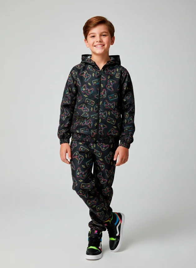 O Conjunto Infantil Menino Corta Vento com Capuz "Controles", perfeito para os pequenos gamers!