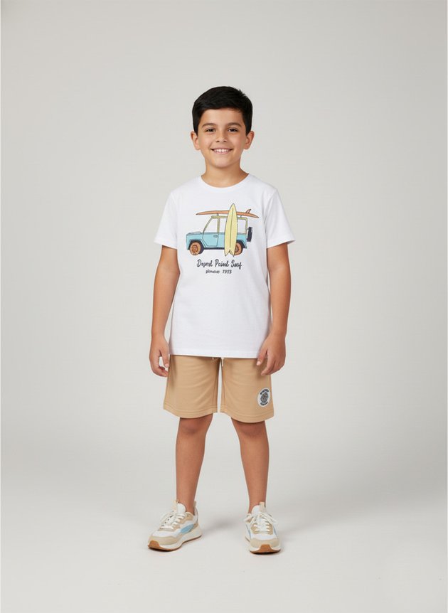 O Conjunto Infantil Menino "Desert Point Surf" é a escolha ideal para os pequenos curtirem os dias com muito conforto e estilo.