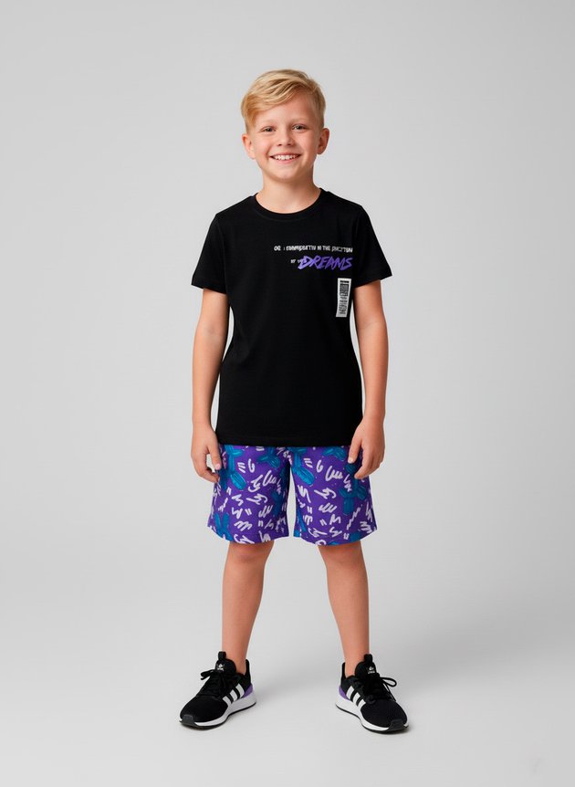 Este Conjunto Infantil Menino "Dreams" de verão é perfeito para os pequenos cheios de atitude e estilo.