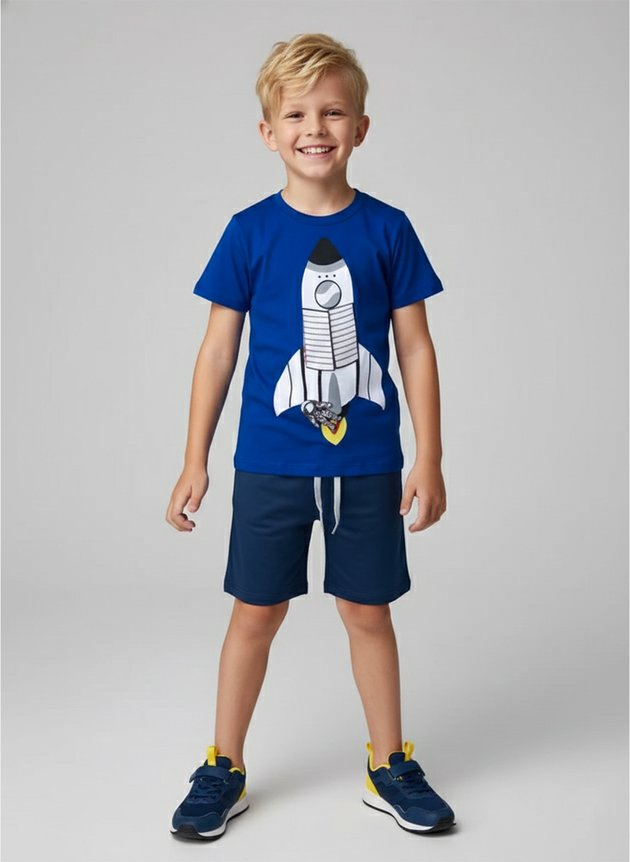 O Conjunto Infantil Menino "Foguete" é perfeito para os pequenos que adoram explorar, brincar e soltar a imaginação com muito conforto e estilo