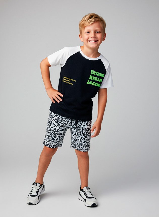 O Conjunto Infantil Menino "Future Urban" combina estilo urbano e conforto, sendo perfeito para os pequenos que gostam de um visual moderno e descolado.