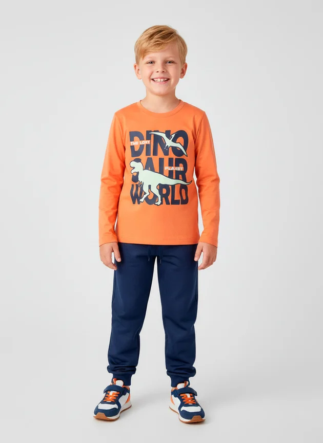O Conjunto Infantil Menino Meia Estação "Dinosaur World" combina conforto e diversão em um visual cheio de atitude!