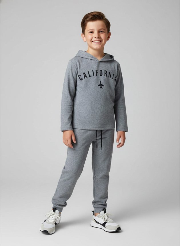 O Conjunto Infantil Menino Moletom "Califórnia" é ideal para os dias mais frios, proporcionando calor e um visual encantador que combina diversão e praticidade.