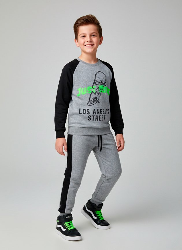 Um conjunto cheio de personalidade para os meninos que gostam de conforto, movimento e atitude no visual!