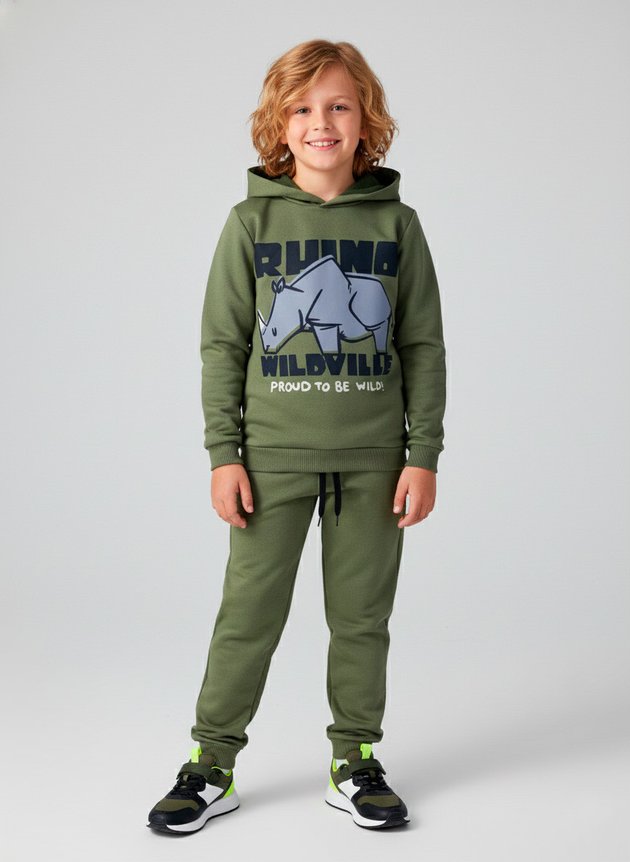 O Conjunto Infantil Menino Moletom "Rhino" traz praticidade e conforto para os dias mais fresquinhos.