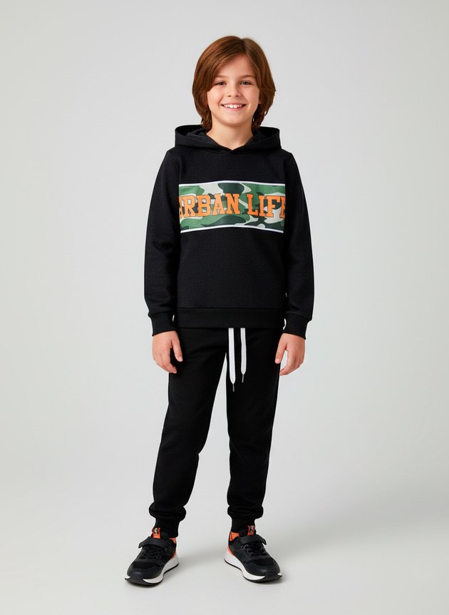 O Conjunto Infantil Menino em Moletom "Urban Life" é a escolha certa para os dias mais frios com muito estilo urbano.