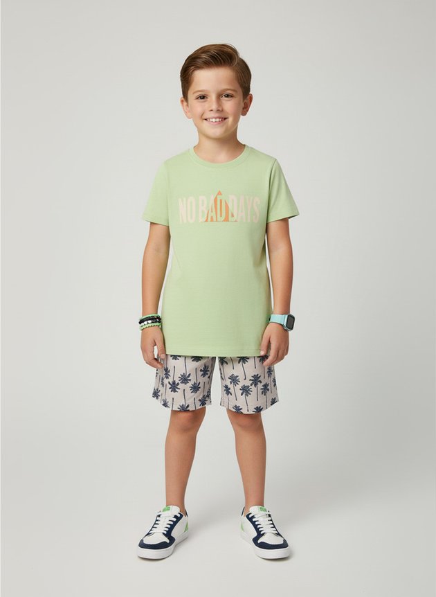 O Conjunto Infantil Menino "No Bad Days" combina conforto e estilo moderno, ideal para os dias ensolarados e cheios de diversão.