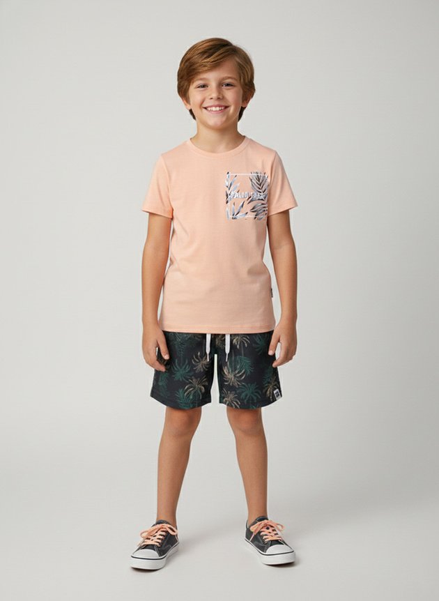 O Conjunto Infantil Menino "Palm Tree" traz conforto e um clima tropical cheio de estilo para o dia a dia dos meninos!