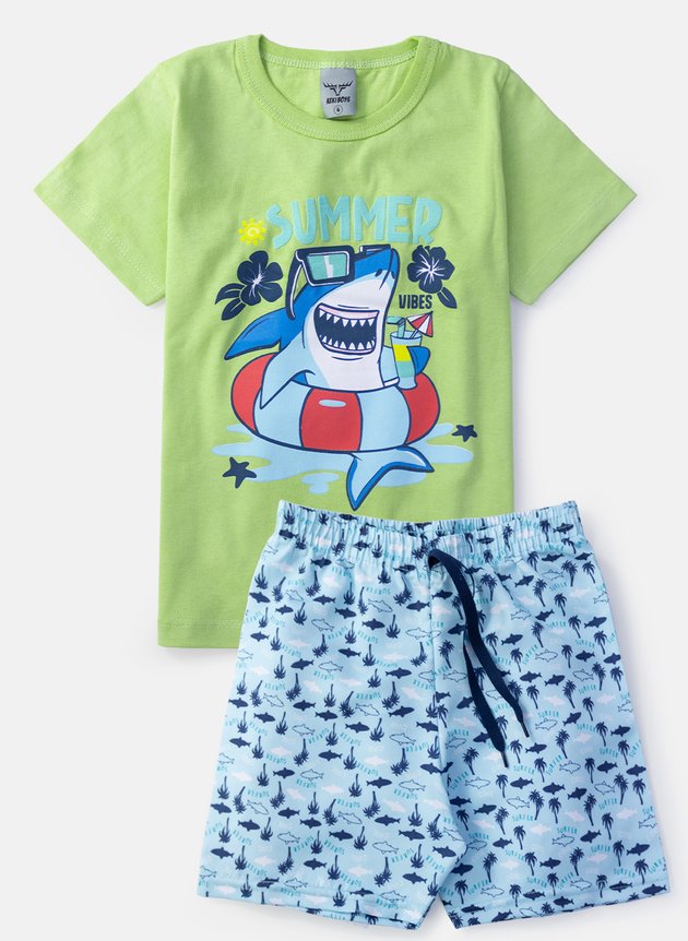 Este Conjunto Infantil Menino é perfeito para os pequenos que curtem um estilo descolado e cheio de vibrações de verão! Com uma camiseta alegre e um shorts divertido, o conjunto traz o clima das férias e momentos de aventura para o dia a dia.