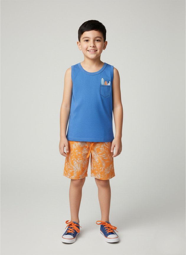 O Conjunto Infantil Regata Menino "Bolsinho" é a escolha ideal para dias ensolarados, proporcionando estilo e conforto aos pequenos.