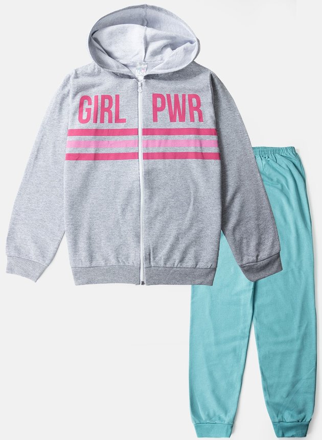 O casaco, confeccionado em moletom peluciado na cor mescla, oferece um toque macio e aconchegante, garantindo conforto durante todo o dia. Com mangas longas e capuz, proporciona proteção extra contra o frio, enquanto o zíper frontal facilita o vestir e permite ajustar a temperatura conforme necessário. O destaque do design fica por conta de três filetes rosas na linha do tórax, que adicionam um toque de cor e feminilidade, além da escrita "Girl Pwr" que celebra o empoderamento feminino e inspira confiança.