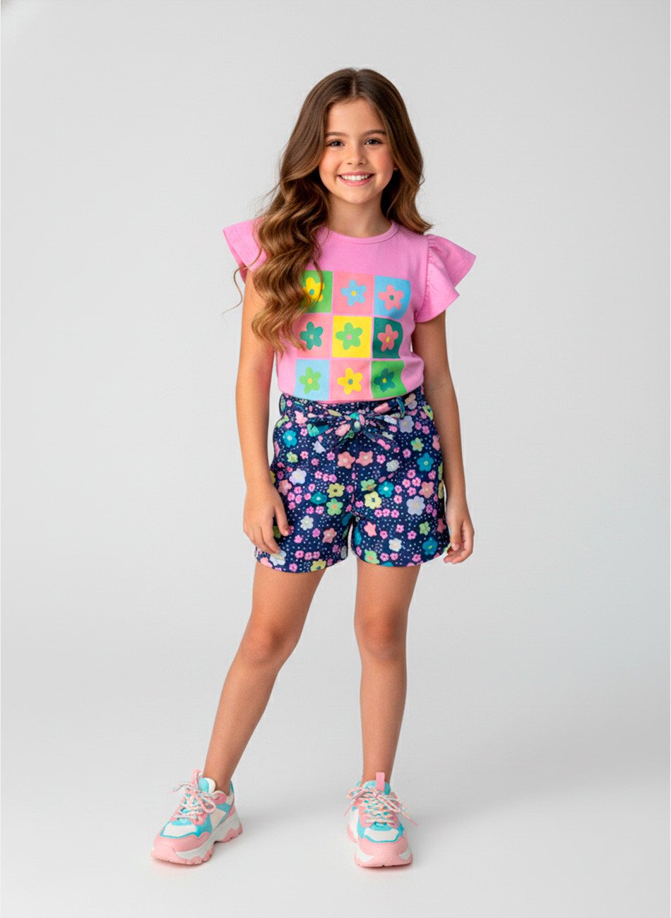 Ideal para crianças pequenas, esse tipo de conjunto geralmente traz personagens lúdicos, animais fofinhos ou frases encantadoras. A parte de cima pode ser uma camiseta ou blusa de manga longa, combinada com shortinho ou legging. É o look perfeito para os momentos de diversão e descobertas.