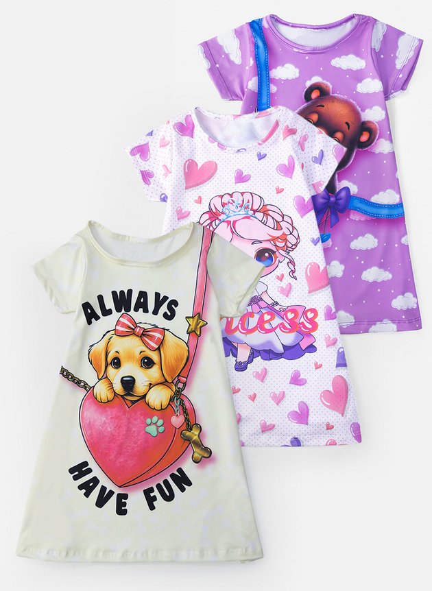 - Kit 3 Vestidos infantil feminino, perfeito para as meninas que gostam de se destacar com estilo e conforto nos dias mais quentes.