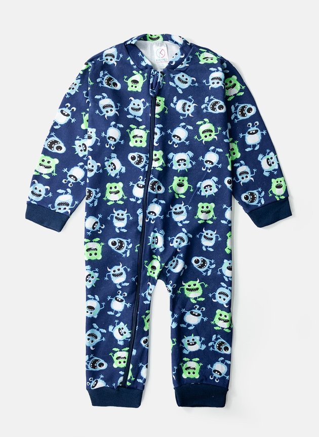 Além disso, o design encantador deste macacão é um verdadeiro deleite para os olhos, com uma estampa lúdica de monstrinhos sorridentes que percorrem toda a peça. Esses amigáveis monstrinhos certamente irão estimular a imaginação do seu pequeno enquanto ele se diverte explorando o mundo ao seu redor.