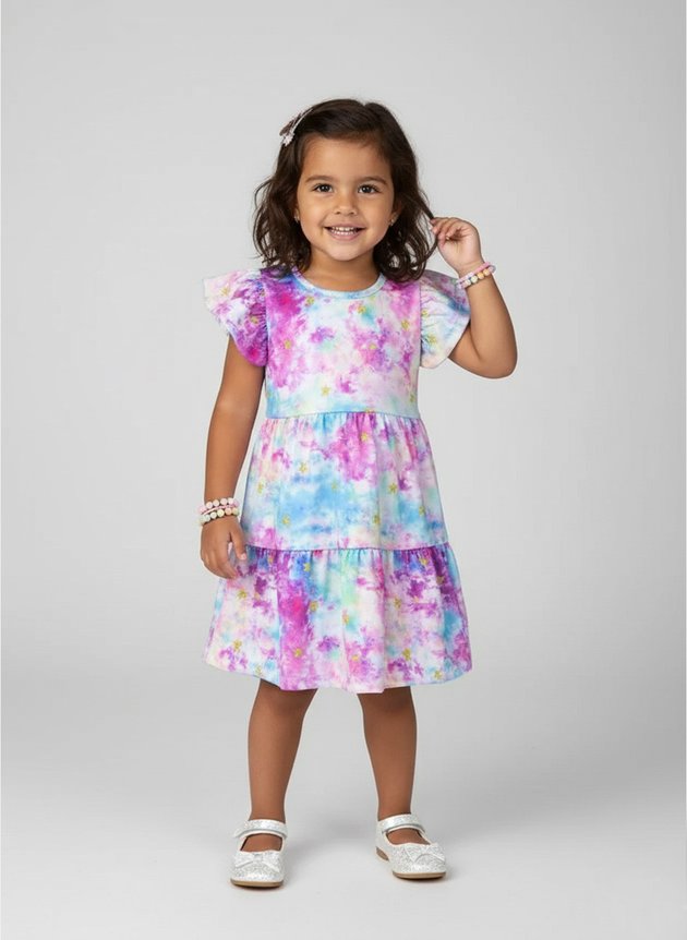 O Vestido Infantil Manga Curta "Tie Dye" trás todo o encanto e delicadeza que as pequenas precisam!