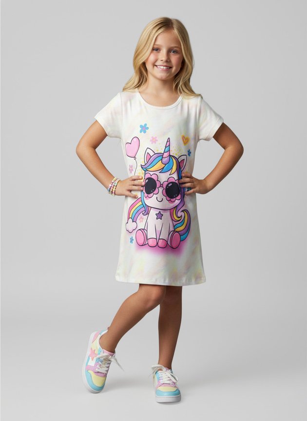 O Vestido Infantil Manga Curta "Unicórnio" encanto, conforto e muita fantasia em um só look!